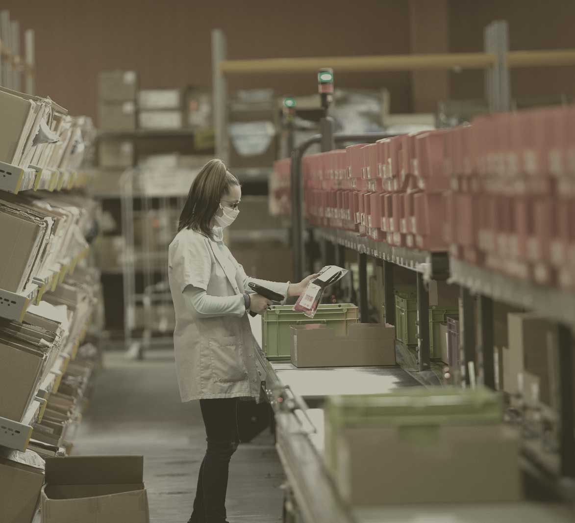 La gestion des stocks grâce à un WMS renforcé permettant de traiter le produit dès son arrivée et pendant tout son parcours de préparation puis de livraison jusqu'au client.